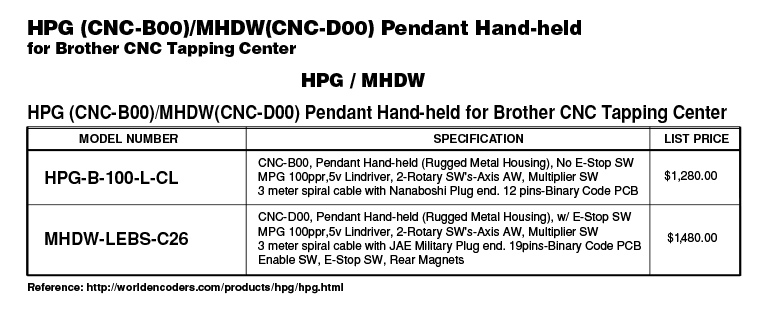 Series MPG/ Pendant Hand-held (for Brother CNC Tapping Center)